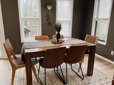 Color palette lends itself to many design styles. Would recommend rug pads if using on a slick surface. Texture is a little rough