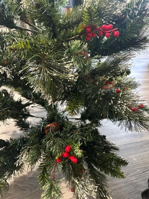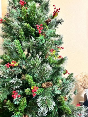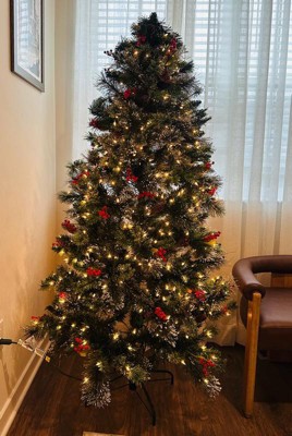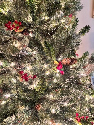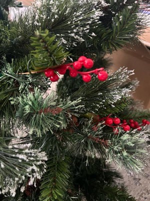 [This review was collected as part of a promotion.] I could not be happier with this tree!! The hinged branches alone are a game changer and I am obsessed. Gone are the days of sorting individual branches by color, pulling out a crumpled paper guide from decades ago, and realizing half the color coding is worn off or missing. With this tree, the branches are pre-attached on hinges, so assembly is quick and painless. Honestly, that feature alone makes it worth it. There’s a video in my review here showing the hinges and how darn easy they are to set up! I picked the Wintry Pine because it has variety and character. Some branches are touched with snow, but not all, which keeps it looking natural rather than completely frosted. It also has berries and pine cones mixed throughout, along with three different types of branches for texture/depth/variety. It is prelit with 550 clear warm lights, which look classic and cozy. The lights are already strung and stay on even if a bulb goes out, which makes setup even easier and allows you to get to ornament hanging (the best part!) even faster. What I love most is that this tree feels beautiful even without ornaments. Between the lights, the snow, the pine cones, and the berries, it has SO MUCH dimension that you can put a skirt around the base and call it a day if you want. The tree comes with spare bulbs and fuses, weighs about 28 pounds, and is easy enough to move and store. The metal base feels sturdy, and the whole thing feels like it will last for years. I am genuinely excited to put it up for the season. It feels warm, festive, and welcoming, exactly what I want in a Christmas tree 🎄🎁