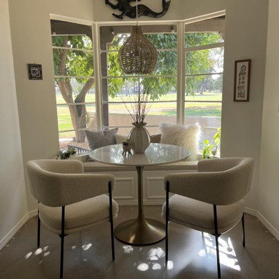 I finally pulled the trigger and ordered these as they were on sale. And I’m so happy that I did because they are the perfect addition to my breakfast nook. I have already received so many compliments, and super easy to put together. The only downside would be that one of the chairs legs were a bit uneven, but I was able to fix that by unscrewing two of the little leg ends to make the chair not wobble. Quick and easy fix.