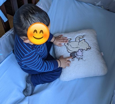 [This review was collected as part of a promotion.] I received this for my almost 2 year old and it’s the perfect pillow for her room. It’s small enough for her crib and doesn’t take up to much space and also is super soft and cozy. I love the Winnie the Pooh and piglet stitching on it also. This is high quality and would be perfect for any nursery. Would recommend!