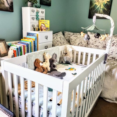 [This review was collected as part of a promotion.] I just adore this jungle animal crib set for our new nursery. We are doing a gender neutral theme and this is perfect. I love that it comes with animals yo stick on the wall. And the blanket is soft and comfy.