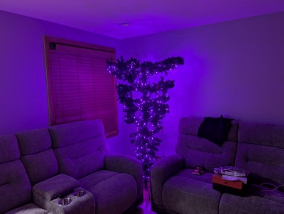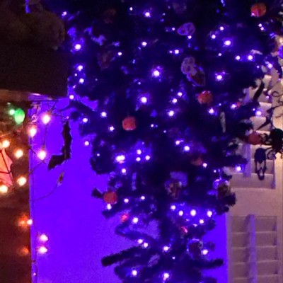 • A: The tree is equipped with 270 high-quality UL-listed purple LED lights for a spooky ambiance.