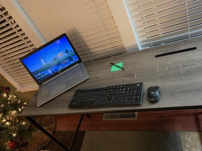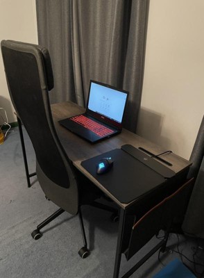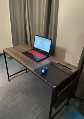 [This review was collected as part of a promotion.] This is perfect for a laptop workstation in our house. With us working from home, sharing one office space was no longer feasible. Got this little desk, and it now we have two workspaces! Easy to assemble and doesn't take up much space The iPad stand doesn't really seem very sturdy, but I like that the charging cables for everything can come up through that little slot. It looked like the desk might feel flimsy when we first opened the box, but it's proven to be a good table! The cross beams on the back are pretty flexible, so I'm not sure how much value they add... They seem to be there more for aesthetics. The hooks and hanging storage bag are a nice touch for keeping the desktop clear.