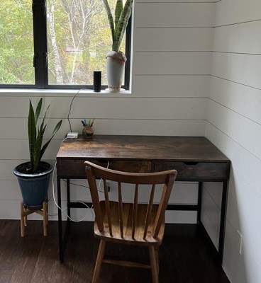 [This review was collected as part of a promotion.] This desk with two drawers in the rustic brown color looks great! We've gotten many compliments on it. The desk came packaged nicely and all inventory was accounted for. The hardware even included a little screwdriver! Assembly wasn't difficult and the instructions were easy to follow. Everything looked great. After completion the desk is fully functional and looks so nice. I love the drawers! People have said that they love it as well. You can't go wrong.