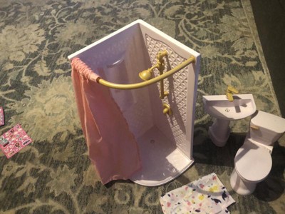 it's a super cute set to look at and display but wish the shower were taller and wider to better fit the dolls.