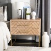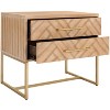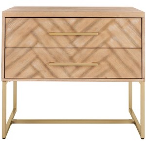 Alive with natural beauty and a dynamic modern pattern, this contemporary nightstand brings elan to any bedroom. Designed with an oak finish and substantial brass metal hardware and legs, its generous two drawers make it as functional as it is stylish.