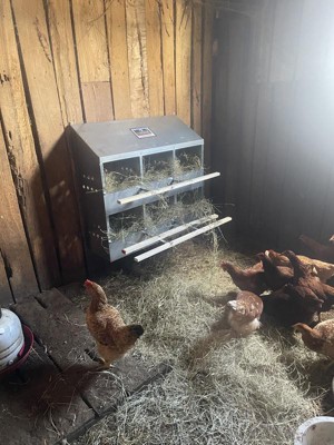 [This review was collected as part of a promotion.] We love this galvanized steel chicken nest from brower!! Before our chicken coop doesn't have a chicken nest so the chicken lay their eggs everywhere and it makes us difficult to collect it, plus the kids sometimes step on it. Make a nest boxes from wood unfortunately make the coop looks more dirty cause it can be modly from water damage. So this Brower nest is perfect! It's strong and sturdy and enough space for every chicken. Included enough parts to hang it on the walls and installation is bit confusing but we can figure it out easily. We just need to stuff the nest with some hay. We very pleased with this product!