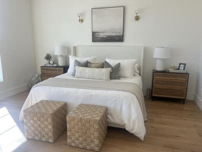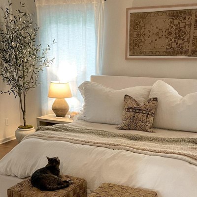 Love love love these woven cubes! I have Ben waiting for them to launch for months and I am so glad I was able to snag 2! Packaged very nicely and arrived super quickly. Upon unboxing them, they definitely did not smell very good but I’m sure that will go away. Overall great purchase adds another layer of texture to our primary bedroom. I styled them at the foot of our bed!