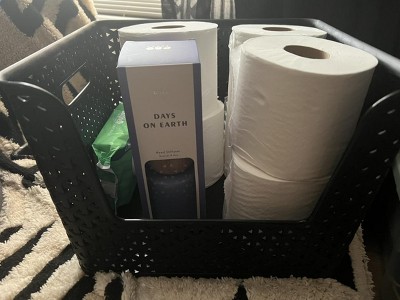 I love using these baskets in our linen closets. They hold a good amount of items but still fit perfectly on the shelving. I love purchasing a few of these when they go on sale.
