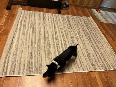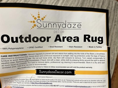 [This review was collected as part of a promotion.] I absolutely love this area rug. I though about using it outside but didn't want it to get wet....even if it is indoor/outdoor. So I placed this in the front room of my house where I kennel my dogs and it is perfect. The only issue is getting it to lay down correctly because it came rolled up. But in time that will go away. I can sweep it or vacuum it or clean it with my scrubber. It really is very, very nice!!! Very Durable and easy care!!!