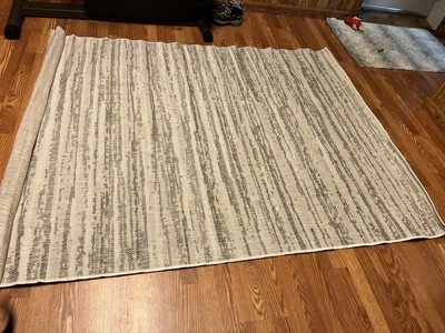 [This review was collected as part of a promotion.] The neutral pattern has a contemporary look that would fit in with any style. I opted to use the rug indoors in my dining area. The low nap vacuums easily and spills from my grandkids clean up easily leaving no stains.