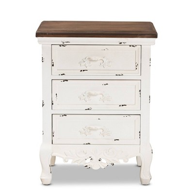 Lambert Wood 1 Drawer Nightstand White - Baxton Studio: Traditional Storage with Antique Finish, Metallic Silver Hardware