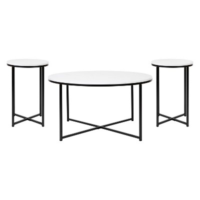 Merrick Lane Glass Coffee Table with Round Matte Black Cross Brace Frame