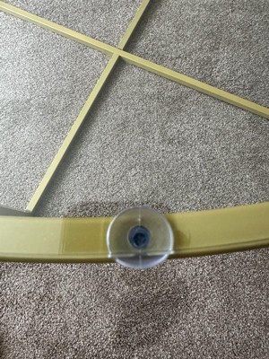 [This review was collected as part of a promotion.] Assembly time 10 minutes instructions clear. Tools included. Packaging good. Metal is painted and looks a little yellow vs gold. There is a picture of where the paint is off and the suction cups are too big hang over the frame (there is a pic of that too)