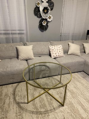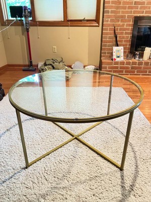 [This review was collected as part of a promotion.] The coffee table makes for a nice accent piece in my living room. Have used it for the past few days and I like it. Assembly was pretty easy and took just a few minutes, but getting the glass piece flush with the frame was a bit difficult. Wish there was some kind of insert instead of the glass piece “floating on top”. Generally though, the build is nice. 3 main metal pieces: the 2 leg pieces and the round top. The finish isn’t anything crazy to rave about, it’s just a simple brushed brass coloring. Another thing to note is that you should try your best to rotate the table so the legs look even from wherever you’re sitting. Otherwise, it’ll look lopsided. Overall, it’s a nice table and gets the job done. It’s nothing special, but it’s as reliable as reliable can get!