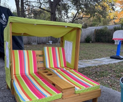 Costway Kids Double Chaise Lounge Patio Lounge Chair with Cup Holders & Awning Colorful