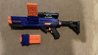 I received this product in exchange for writing a review. My 13 year old son felt that this dart gun was "decent". He was a little disappointed that the gun does not shoot as hard as he wishes that it would which he felt was surprising because it is battery powered. He also noticed that because it doesn't shoot as hard, the bullets arch downward and aren't as accurate as accurate in reaching targets. My son liked that this dark gun has 2 chambers for loading bullets. He felt that overall it is a little bit loud and he also noted that the scope is loose and moves too easily. He did think that it looks cool and that it holds a fair amount of bullets. I thought it was interesting that he did note that the colors on the start gun are the same colors as Nerf traditionally uses, which he felt a little bit weird about and commented that it felt like they were copying Nerf. Overall he rated this dart gun a 7 out of 10.