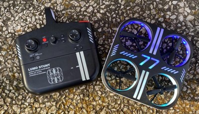 [This review was collected as part of a promotion.] This is a cool little drone, I love the lights that are on it. Makes it look awesome if you fly it at night: with that being said, this thing is so hard to control! I finally somewhat got the hang of it, but it wasn’t a smooth ride that’s for sure. Doesn’t stay charged very long either, but quite the fun little toy for a short amount of time.