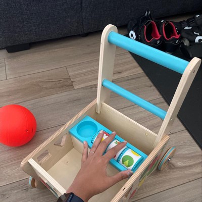 I love Melissa and Doug products and toys for my daughter! But this cart was a disappointment. The rubber band on the wheel keeps coming off and is very difficult to put back on. I sometimes can't even find where it went. My daughter gets frustrated when the rubber gets stuck and the wheel doesn't move. She likes the cup and puzzles that came with it though.