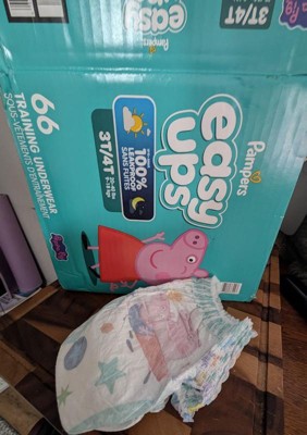 [This review was collected as part of a promotion.] I recently started using the 66 count pack of Pampers easy up in size 3T 4T and they have baited noticeable difference. The cotton lake materials incredibly soft against my toddler skin, providing an underwear-like feel without being stiff. Unlike some other trading pants. These have a slim fit that reduces bulkiness under clothes so my little one can move around easily. The absorbency is impressive, even for overnight use. Thanks to the built-in channels that lock away wetness when accidents do happen, the easy tear size make the change quick and mess free. Since they are fully disposable. I just roll them up and toss them. No fuss involved. The Peppa Pig designs are just the icing on the cake to keep things fun.✨