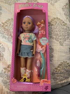 [This review was collected as part of a promotion.] I recently received this adorable Glitter Girls Luma doll for my sons half sister. I love all of the cute little hair clips, fake colored hair, and pony tails for you or Luma. Her arms and legs bend which is uncommon but really like, makes it different from every other doll. I thought it was weird that she comes without any panties! I love that her shoes come with actual laces. Great to start early teaching to tie. This doll is very unique and I love that! She has tons of dolls but none that are different like Luma. I forgot to mention that Luma can rotate her arms and legs easily! I was surprised by how big she was 14 inches. Easy to clean, great for ages 3 and up. Highly recommend, this doll is so unique compared to every other doll out on the market today!