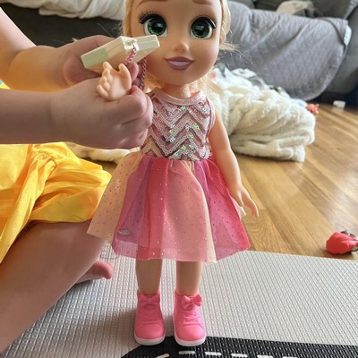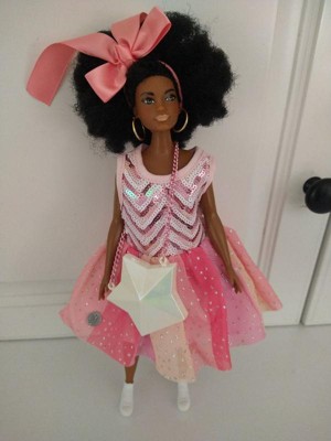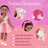 - Radiant Features: Includes a pink sequined dress, high-top sneakers, elastic bow, and star purse.