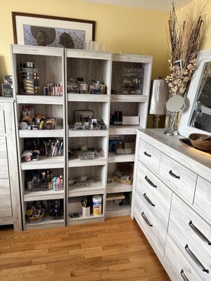 This bookshelf offers a stylish and functional solution for displaying books and decor, making it a great addition to any room. Guests appreciate its easy assembly and sturdy design, which holds a surprising number of items. While some have noted minor quality concerns, the overall aesthetic and versatility of the piece make it a popular choice for enhancing living spaces. Its compatibility with other furniture pieces adds to its appeal.
