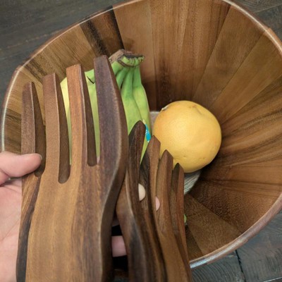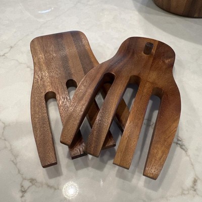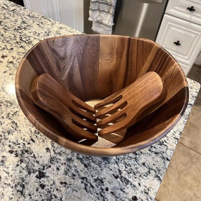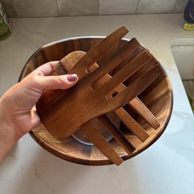 40oz Acacia Serving Bowl with Salad Hands - Lipper International
