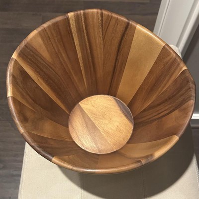 I can't say how much I love this bowl! It is very well made. The wood is very beautiful with the different color woods and how well it is put together. The wood feels solid and of high quality. I decided to use this as a fruit bowl at first. It's so beautiful to leave on the table or counter with the fruit in it. It also comes with salad scoopers. I'm planning to use these very soon I received an incentive to write this review.