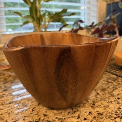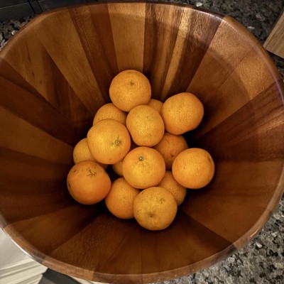 This is a gorgeous bowl that is a perfect addition to your household! It reminds me so much of my Nana and Poppops as it is a such a classic salad bowl that can stand the test of time! The bowl was definitely taller than I was expecting but honestly that’s great for keeping the salad and other goods in the bowl. The base is wide enough that I can put bananas or other fruits in it. I love that the wood pattern is so beautiful that it looks great kept out on the table. I will be using this bowl for a lot of different uses in our home! I received an incentive to write this review.