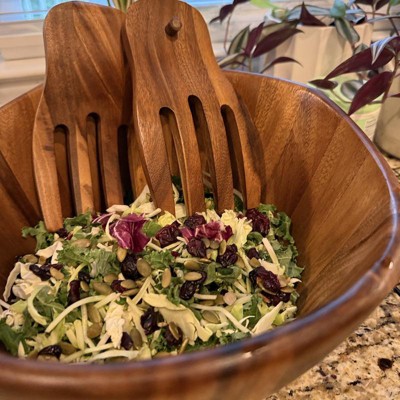 Beautiful Wood Salad Bowl With Serving Forks