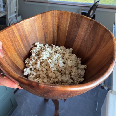 I love this bowl! It’s perfect for a bigger family or having people over. I plan to use it for salads (in picture for reference) and snacks like chips or popcorn. It’s made of a nice, thick wood and is a decent size. The tongs with it are also cute, I like how they’re small so easier to store. They also have little nubs on them which make it easier for gripping. Excited to use this a lot! I received an incentive to write this review.