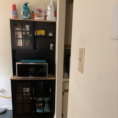 This hutch is attractive and functional -- I like that it has multiple areas where you can store things. I have my stand mixer out on the counter portion and canisters of flour and sugar in the upper right, and then disorganized goods in the window cabinets. It's also very sturdy.