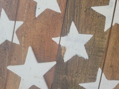 I love the wood but the stars are so sloppy. Hand painted or sponge and doesnt look neat at all