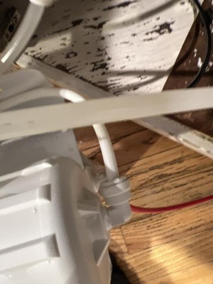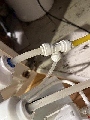 Red water in line doesn’t stay in the one touch fitting. Three way valve (water in, expansion tank, water out) has 3/8” fittings on either end, water in 1/4” line isn’t in the middle like it shows in the picture. We have 6 stages, install doesn’t show the 6th stage. Guide on this web site doesn’t match what we have. Where is the install guide on the website?