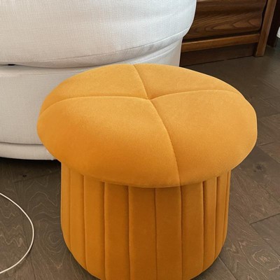 Fabulaxe Modern Tufted Velvet Mushroom Shape Storage Ottoman Storage Stool Trunk, Mustard Yellow