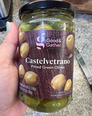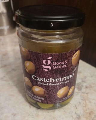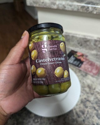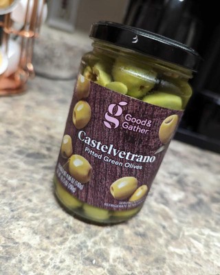 Experience a taste of Italy with these Castelvetrano Olives from Good & Gather™. These pitted green olives have a buttery-sweet flavor and crisp, meaty texture that pairs well with a variety of cured meats and cheeses. These Castelvetrano olives have no artificial flavors or synthetic colors and are pre-pitted so they’re ready to eat right out of the jar and easy to use in a variety of recipes. Enjoy them as a flavorful snack on their own or add them as a component of a charcuterie board or snack spread.