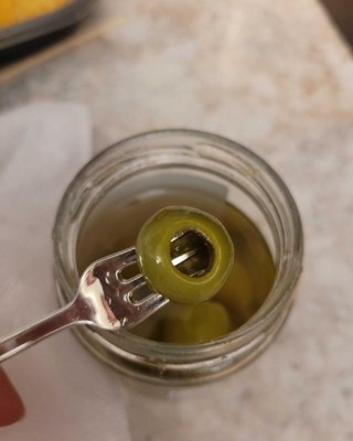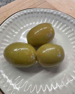 My husband dug into this jar before I was able to finish putting groceries away. Then he brought the jar to be half empty. They really are delicious. They are good sized and firm, but not crunchy. They do not have pits or the orange pimento I'm used to finding in green olives. I received an incentive to write this review.