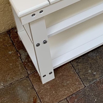 Cute bench, however it was a pain to put together. They give you all the tools you need, however the Allen key was stripped by the time I had to screw in the bottom 2 shelves. Bench looks nice but it’s flimsy and the screws need to be fixed.