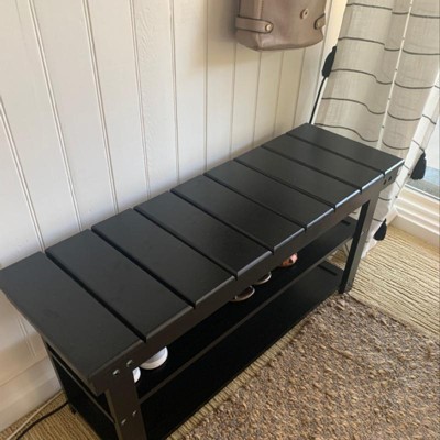 This bench is very poorly made. If I wasn’t too lazy to repack all the parts, I would have returned it. I did get 25% off original price which is why I’m giving it one star and keeping it. It was fairly easy to assemble though. When I opened it, 2 of the top slats already came off. I used some wood glue to repair it myself. And the black paint was missing on the edges and corners. Not scratched, just not painted well. It is a very flimsy bench and wont fit full length of shoes unless you’re only using for kids shoes. Afraid to sit on it as it may not hold up a full sized adult.