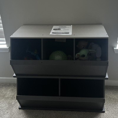 Badger Basket 2 Bin Stackable Storage Cubby Charcoal/Gray Woodgrain: Toy Storage, MDF Laminate, Enclosed Back, 3+ Years
