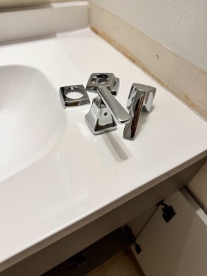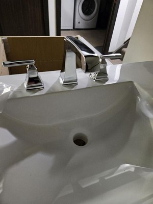 [This review was collected as part of a promotion.] I received this product free in exchange for my honest review. I was so excited to receive this item as a new first time homeowner with a basement powder room to renovate from scratch! Delta makes excellent fixtures and they're usually my first choice. This item is very weighty metal, looks like the high quality I'd expect. Unfortunately, for my specific needs in a small powder room with an 18-20" vanity this faucet is way oversized. I think this is better suited for a very large double sink setup or a laundry tub, where I may use it instead (pictured in photo next to my current utility tub faucet so you can see they're about the same size). The faucet in particular is quite tall and bulky and I believe you'd need some space between each side handle and faucet for the look to be as intended.
