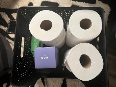 I love using these baskets in our linen closets. They hold a good amount of items but still fit perfectly on the shelving. I love purchasing a few of these when they go on sale.