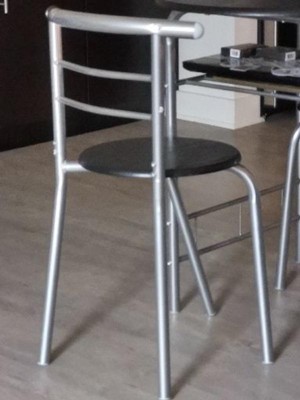 This was easy to assemble & the perfect size for a studio. The shelf is a nice bit of extra storage space. But after less than one month of use, one chair bent under the weight of a 180 lb adult man and is no longer usable.