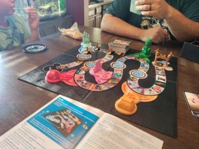 My preteen daughter and I love playing this game. There are two sets of cards, with one that has easier questions for younger kids. We usually play one version of each lol. It's fun, and you also get to learn some interesting facts about Disney you may not have known before. It's also not a huge time investment. Knocked off a star because a) the spinner is terrible. Super cheap and there is a much-too-wide "spin again" bar in between each number. WHY they added this I have no idea. You can literally land on it several times in a row; b) they made a couple of rules more complicated than they need to be, c) the "swirls" you earn for getting a question right are more like shark fins lol, and d) wish they included more of the easier cards, especially given this is Disney and for kids, both the easy and hard stacks should be the same size. Minor gripes but what keeps this from being a 5-star game.
