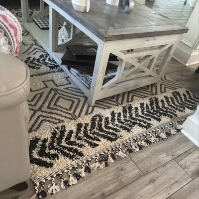 Great plush rug. Love the design and tassel details. It's plush and cozy. I love that it's a statement piece but also neutral colors to go with so much