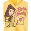 • Featuring adorable gold glitter screenprint design of Princess Belle and the text "Bold Beauty" on yellow sweater; Grey leggings feature all-over print design of pink and yellow roses