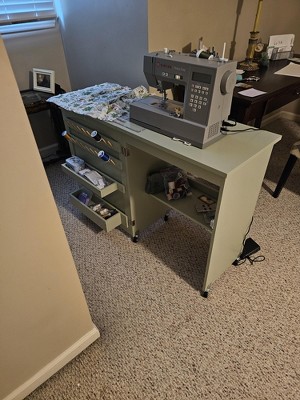 This little sewing table matches my decor and has such a small footprint when it’s closed. It’s also very sturdy and easy to move on wheels. I love it!