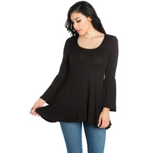24seven Comfort Apparel Womens Long Bell Sleeve Flared Tunic Top - 1 of 4
