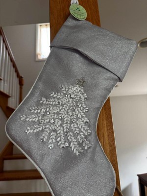 [This review was collected as part of a promotion.] Beautiful 19 inch silver stocking with Christmas tree design on it. It’s going to fit so much treats this holiday season and it’s quality is great and durable. Highly recommend it. I love the detail on the Christmas tree.